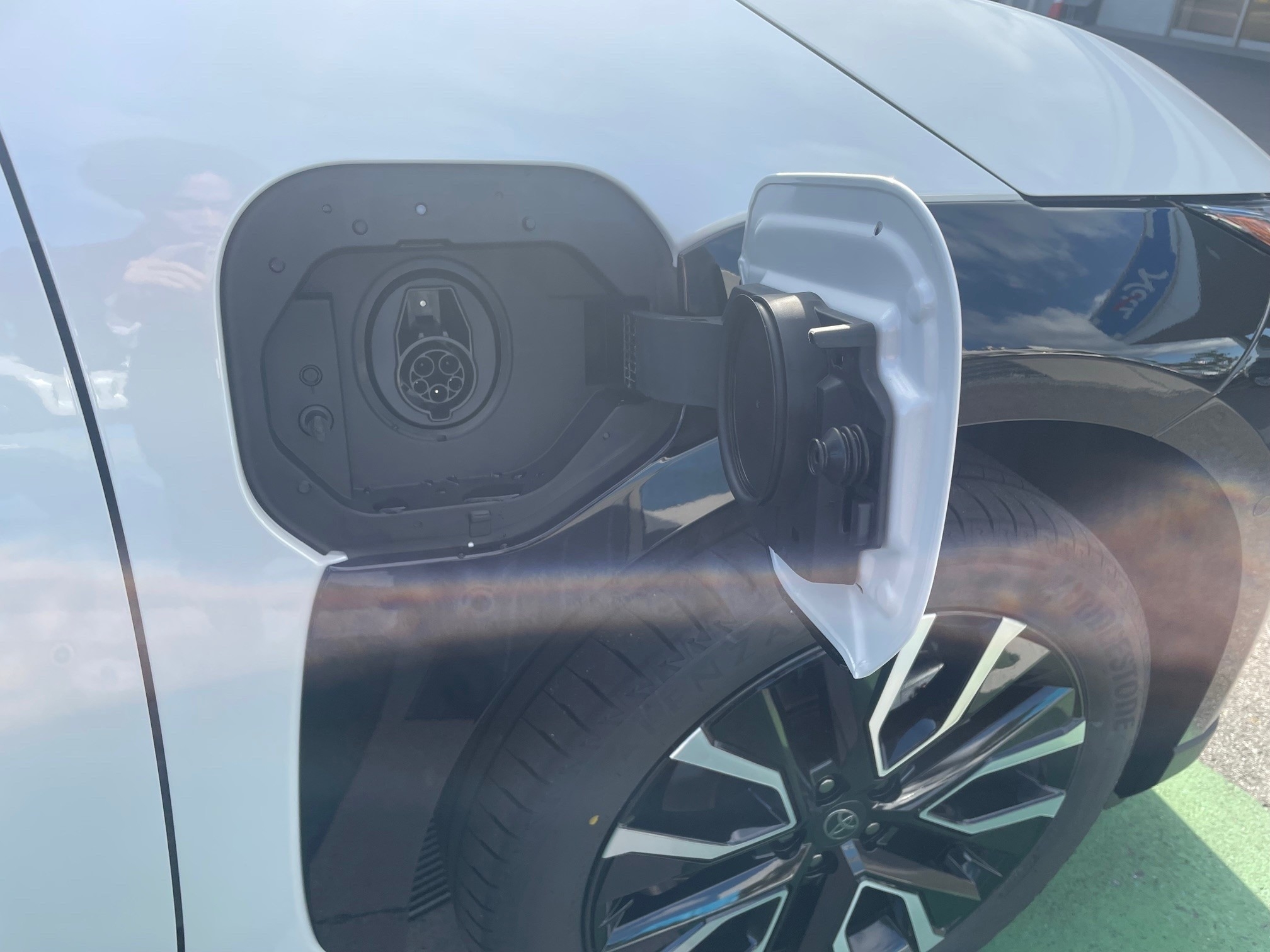 - 運転席側に普通充電の充電口があります↓