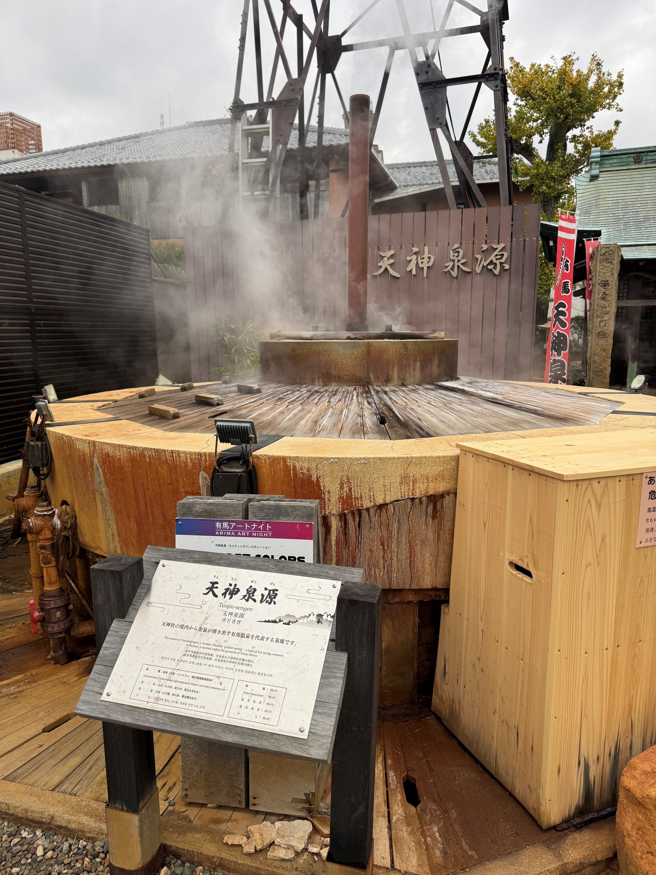 金泉には有馬温泉古来の鉄分と塩分を含んでおり、空気に触れることで鉄が酸化し、赤茶色をしています