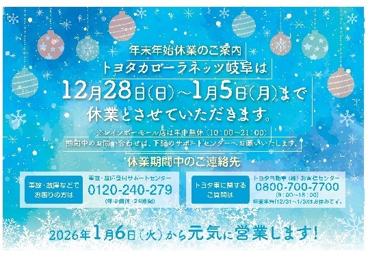 皆様今年もネッツ大垣店をご利用いただき誠にありがとうございました🥰