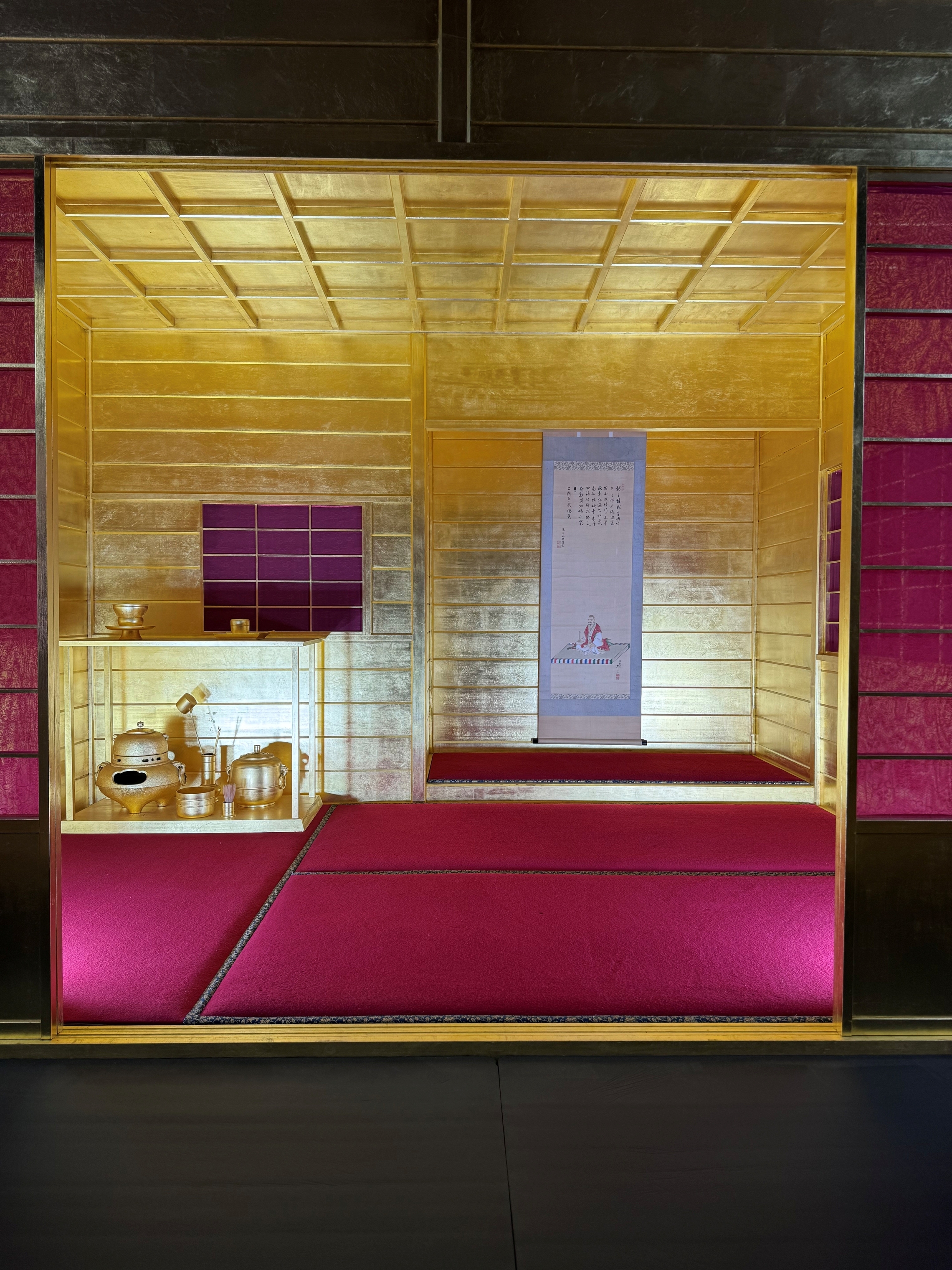 その横の建物の中に黄金に輝く茶室が再現されていました