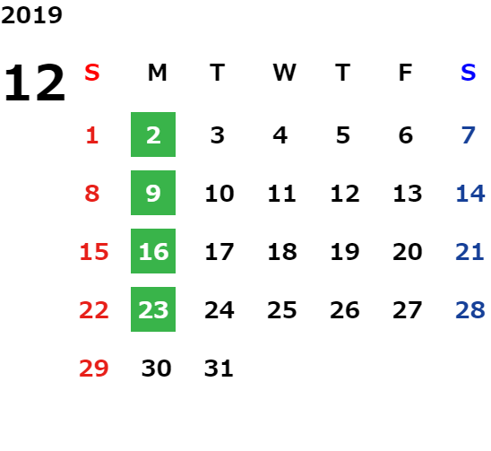 毎週月曜日