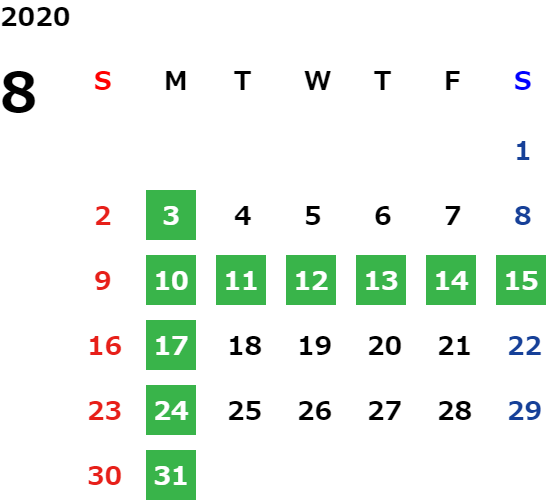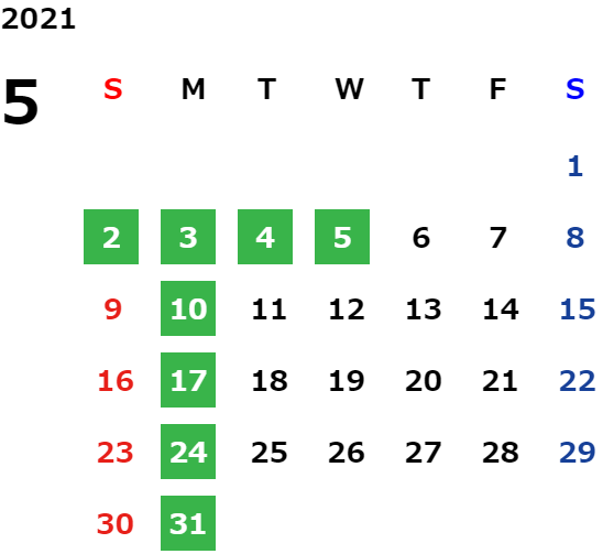 営業日カレンダー